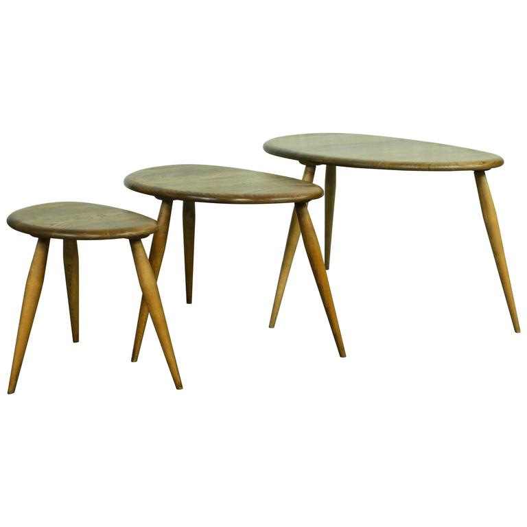 Vintage Ercol pebble coffee table side mid century | in ... from i.ebayimg.com 3d 16h collection in person. Collection only north yorkshire area. The coffee table can be used on its own to create a retro look, or to complement other ercol pieces. Ercol nest of tables cm oak w44 d44 h55cm. It's made from solid elm, with stunning grain patterns on the top. V i nt a g e. 61cm x 110cm, with 1 extension : The coffee table has a lovely blend of modernism and traditional style.